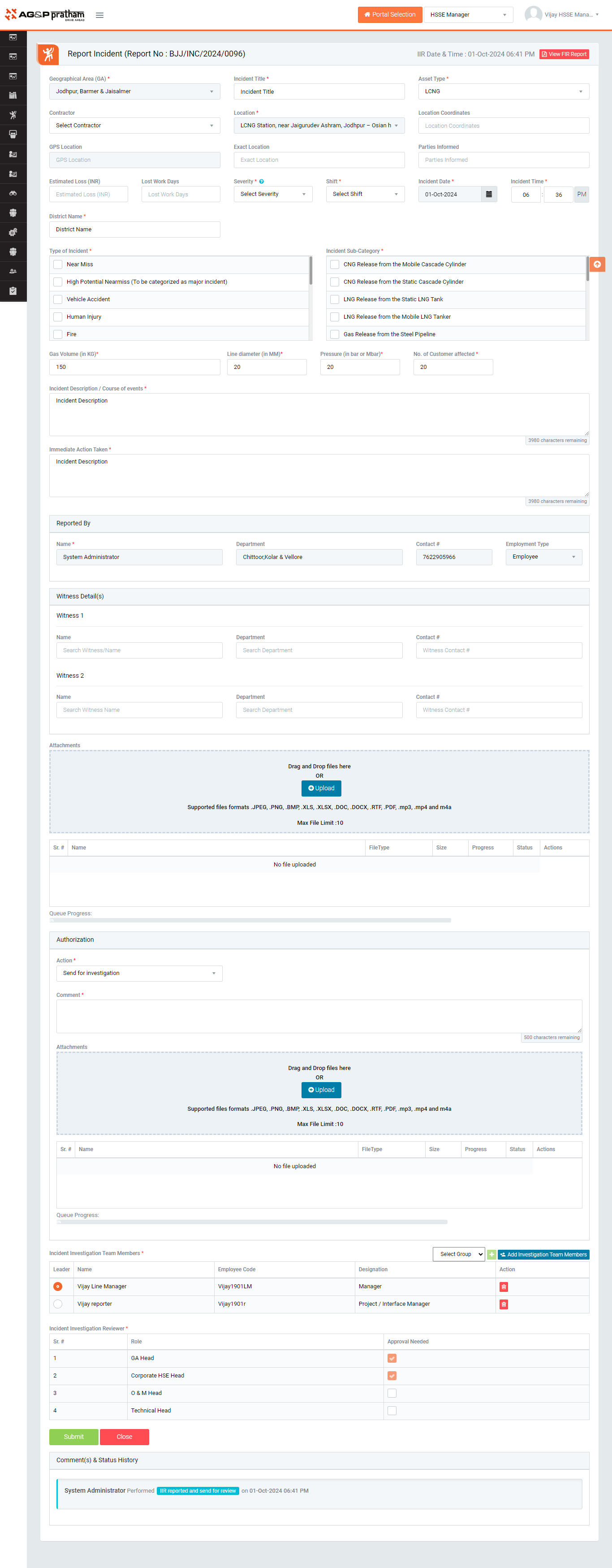 - SEND FOR INVESTIGATION : Send the incident report for further review to HSSE Manager / GA Head.