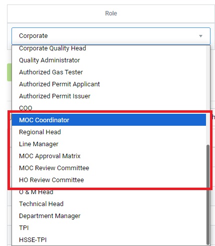 - Review MOC by COO:To review the raised MOC by COO. The reviewer may approve and accept the request or send back for Modifications.
